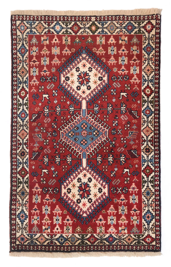 Annodati nella regione del Fars in Iran, i tappeti Yalameh sono annodati con lane locali.