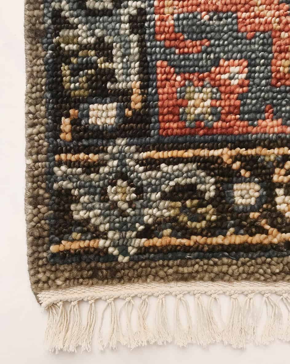 I colori pastello, che vanno dal verde all’arancio al giallo ocra, lo rendono un tappeto piacevole e accattivante che si colloca bene negli arredamenti contemporanei.